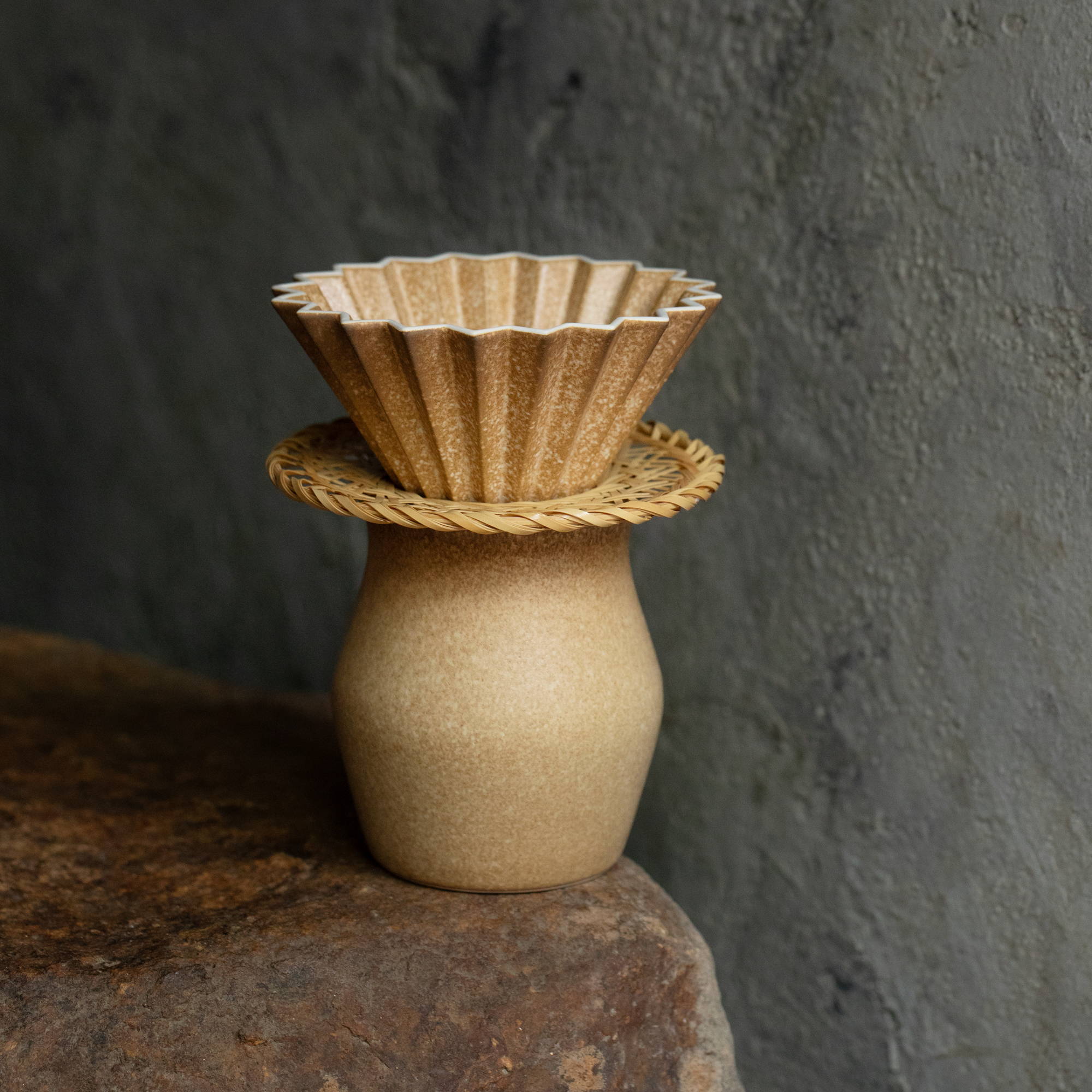 竹製の鍋敷きを見たとき、「こんな感じの竹のドリッパーホルダーがあればいいな、きっと ORIGAMI のドリッパーに合わせると綺麗だろうな。」と思ったのがきっかけで、大分県別府の 竹の商社