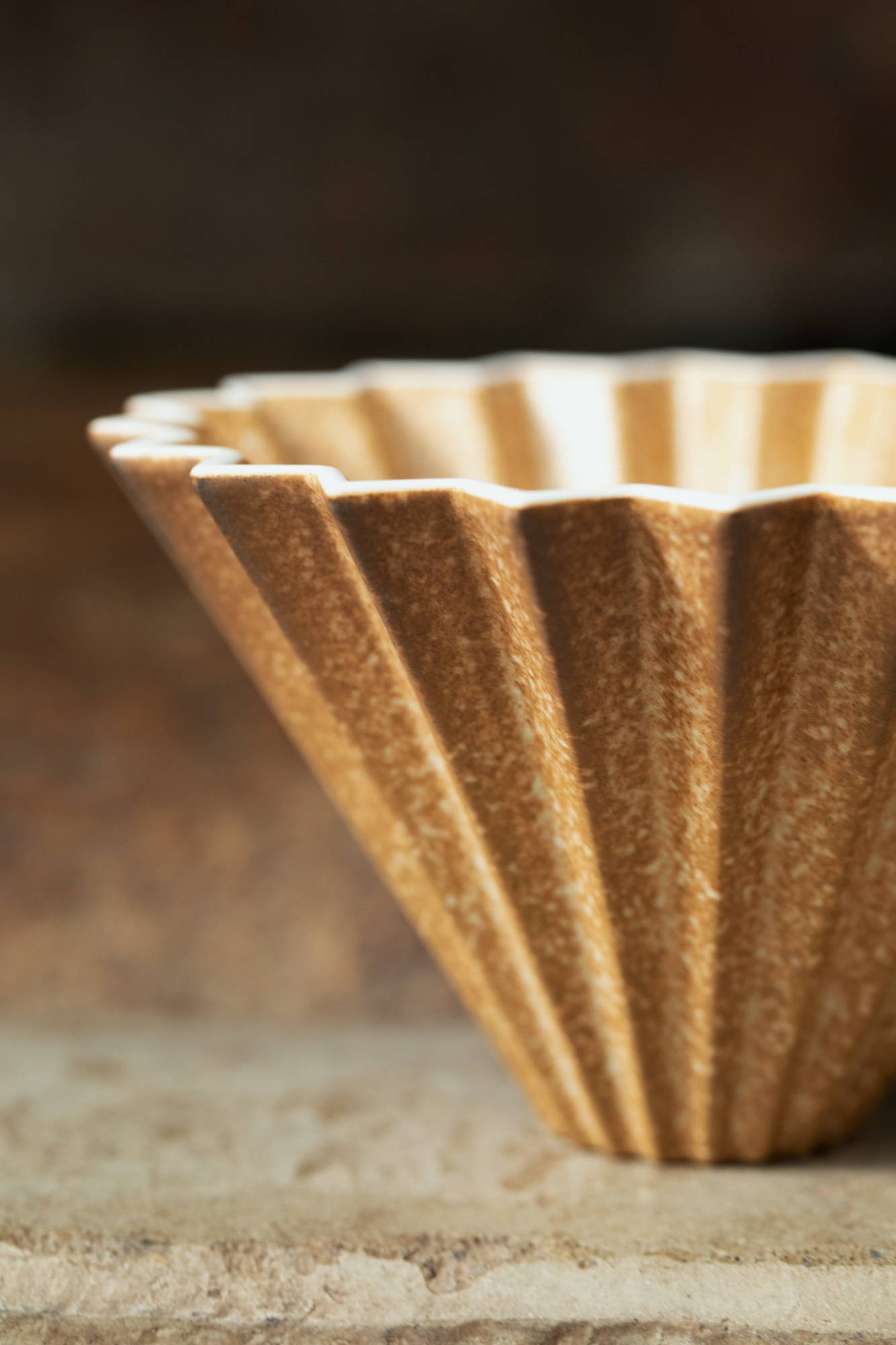 新しい竹細工は青竹や淡いベージュ色をしていますが、時間の経過とともに光や空気に触れて 飴色や深い茶色へと変化します。使い込むほどに艶が増し、風合いが深まり、自分だけの道具 として馴染んでいきます。 今回の限定カラーは、その美しい経年変化を陶磁器で表現しました。 窯変する釉薬を用いているため、一つひとつわずかに表情が異なり、グラデーションの色合いが 竹細工が時を重ねて飴色に変化していく様を映し出しています。 さらに、ドリッパー・ドリッパーホルダー・センサリーフレーバーカップをセットで組み合わせた ときに一体感が生まれるよう、カラーのトーンにもこだわりました。 日本の伝統工芸から着想を得ながらも、現代の暮らしに自然と調和するモダンな色合いです。