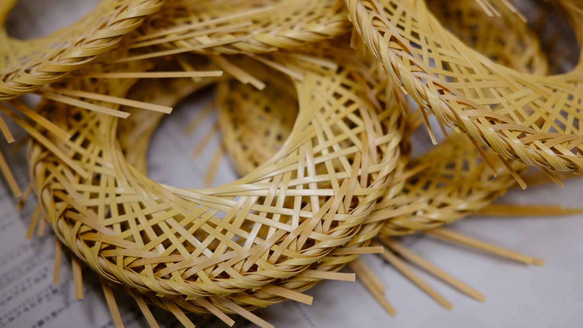 別府の竹細工は、淡い黄金色の艶やかな風合いと、経年変化の美しさ、そして細かな編み目と長く使える強度に特徴があります。