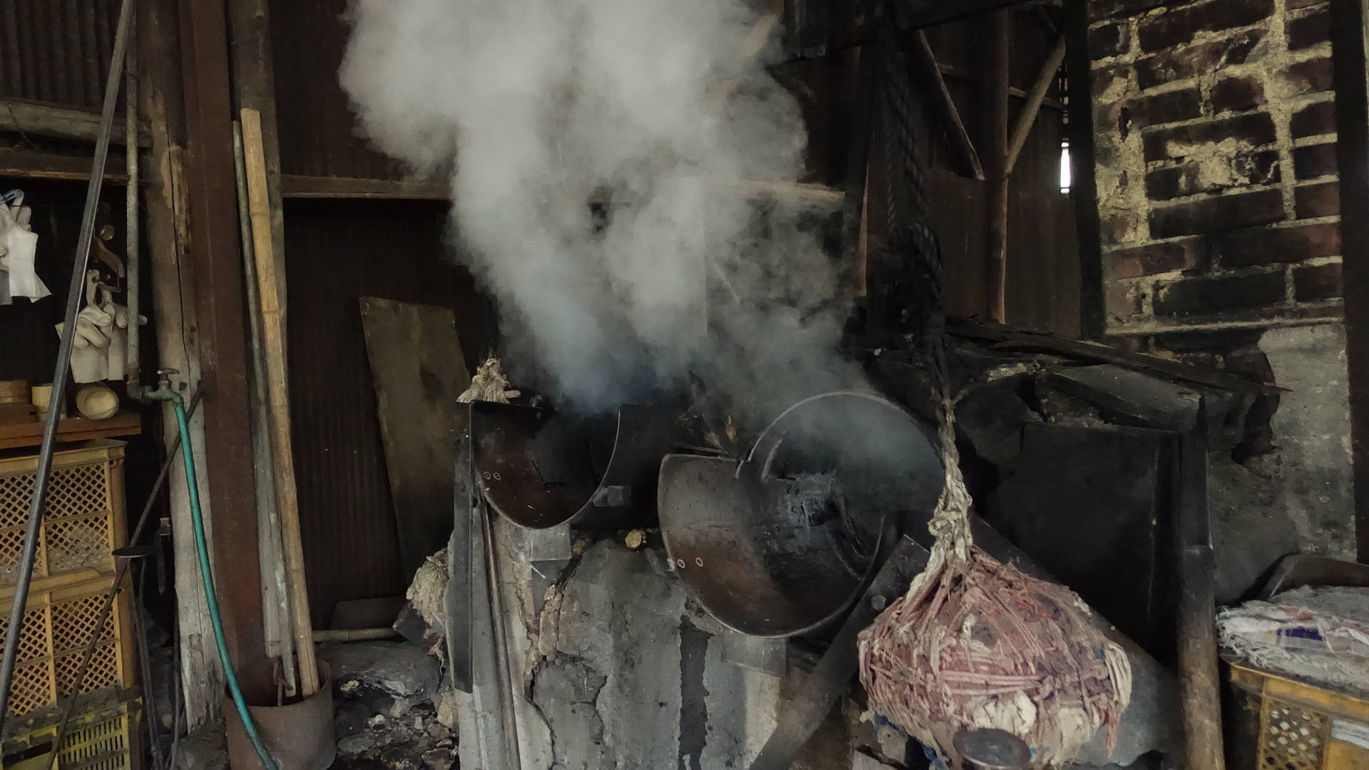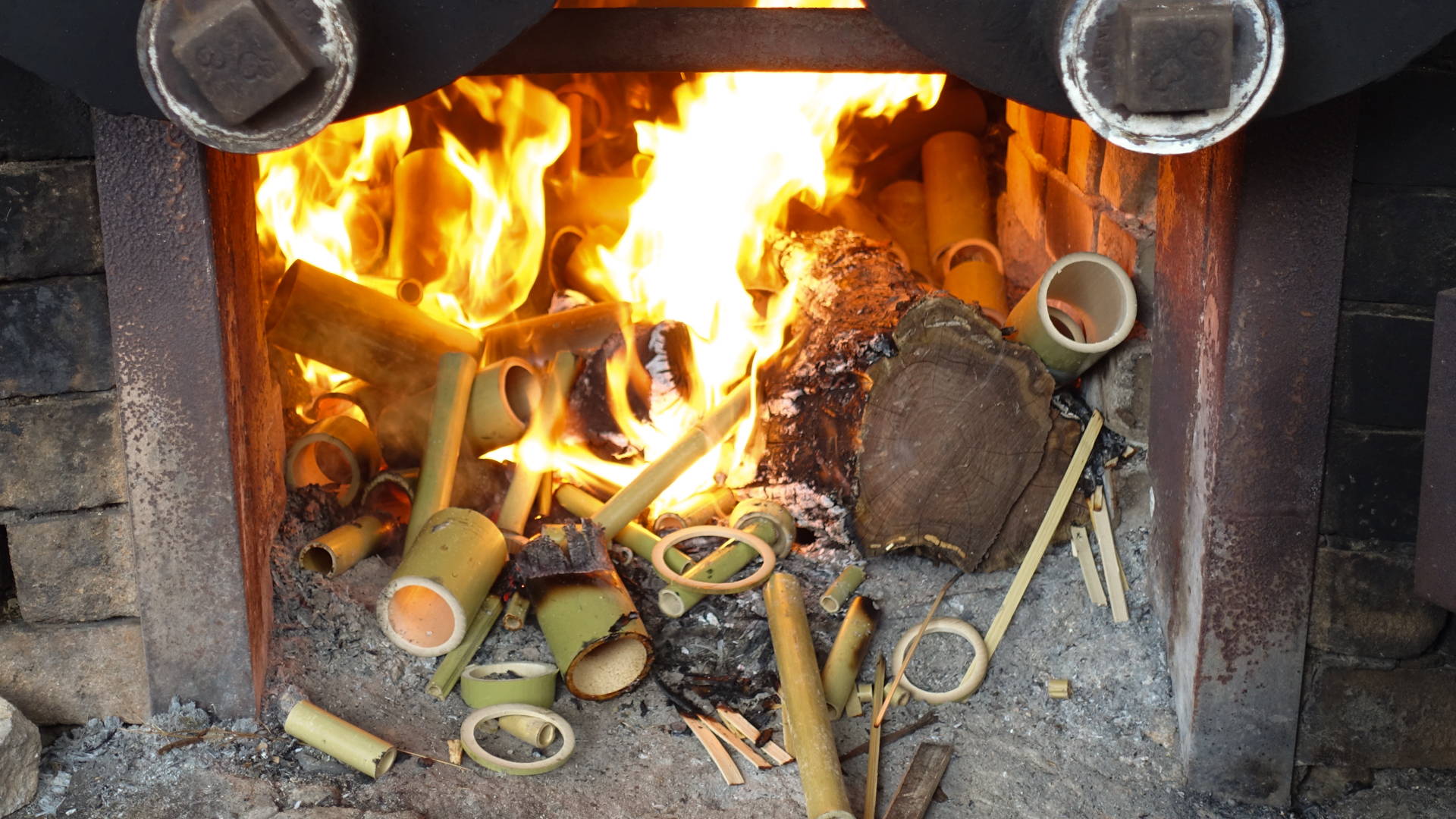 湯釜に使う燃料は工場で出た竹の端材が活用されています。