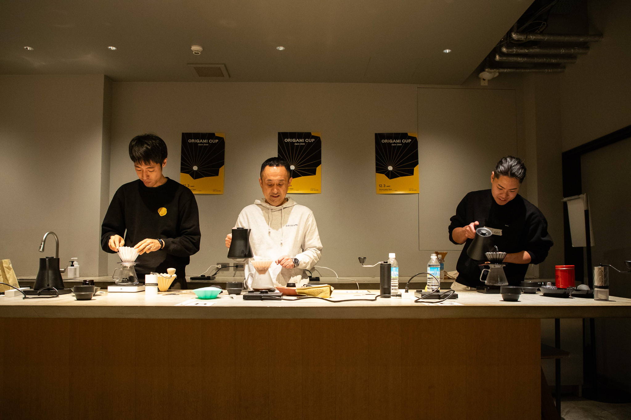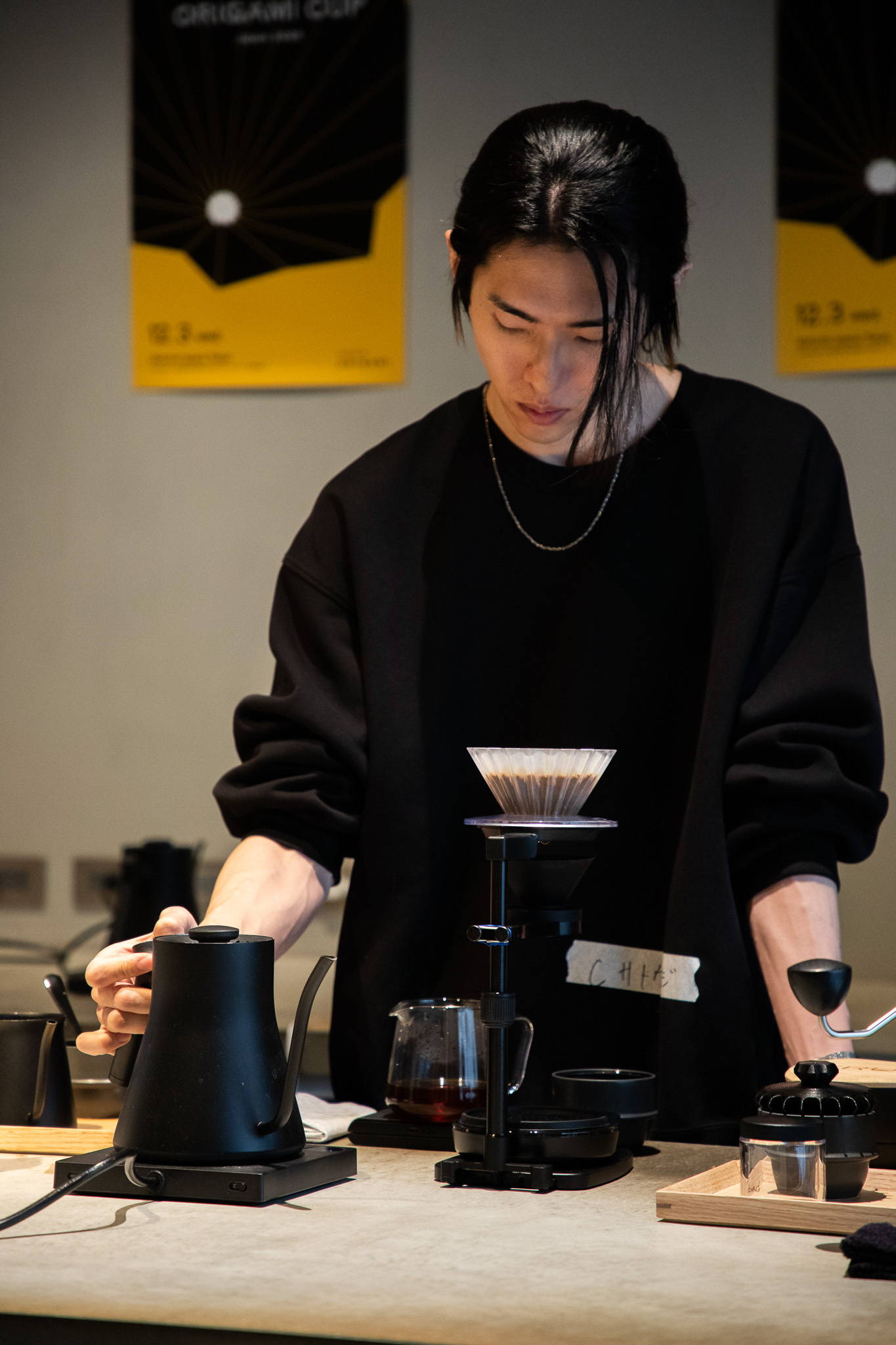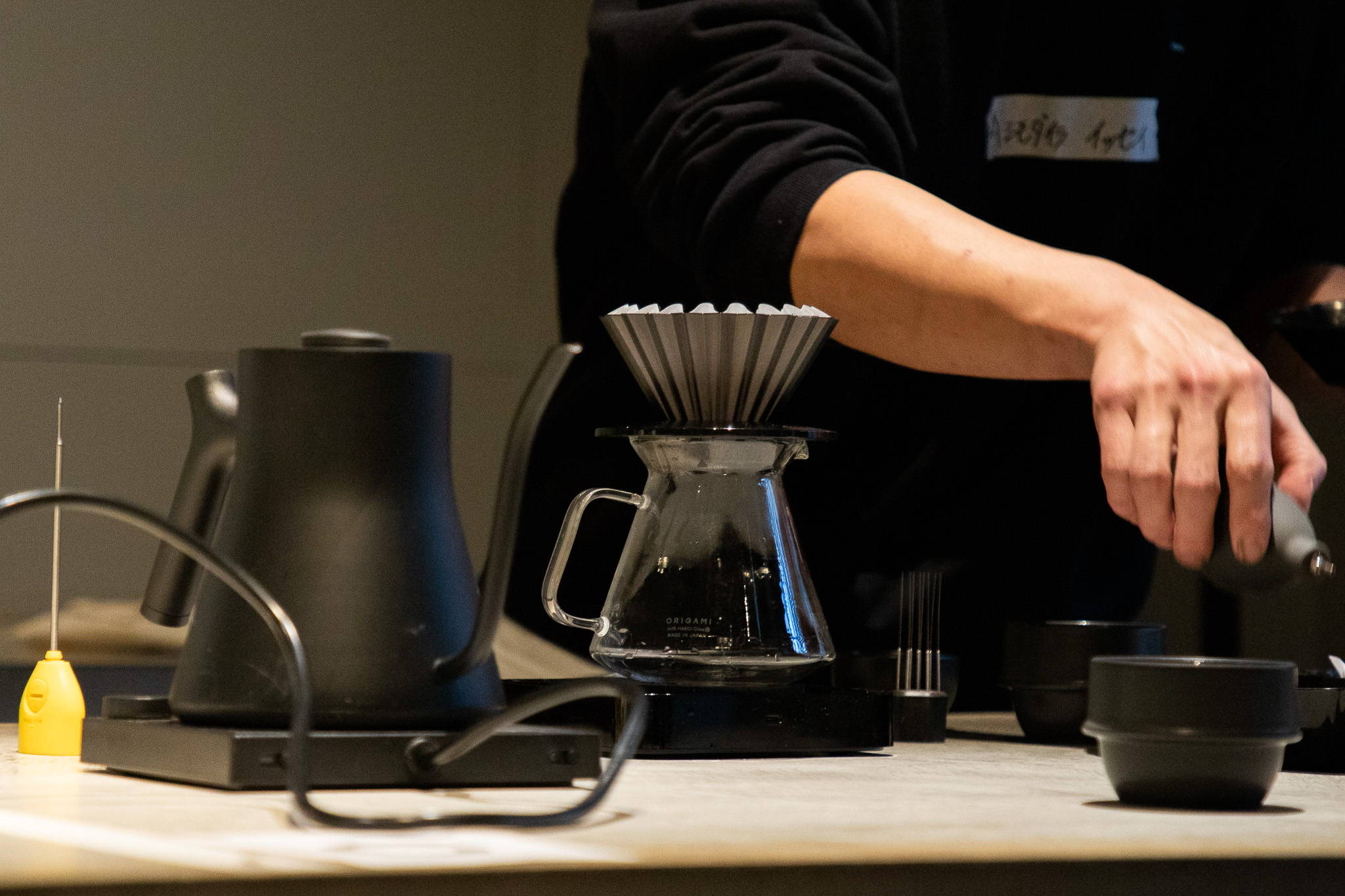 ORIGAMI Dripper Air S, Dripper Holder AS Resin, Glass Coffee Server with HARIO, ORIGAMI Paper Filter Wave, Comandante C60, Rinser Assist, Barista Hustle The Comb, ORIGAMI Beans Tray,
